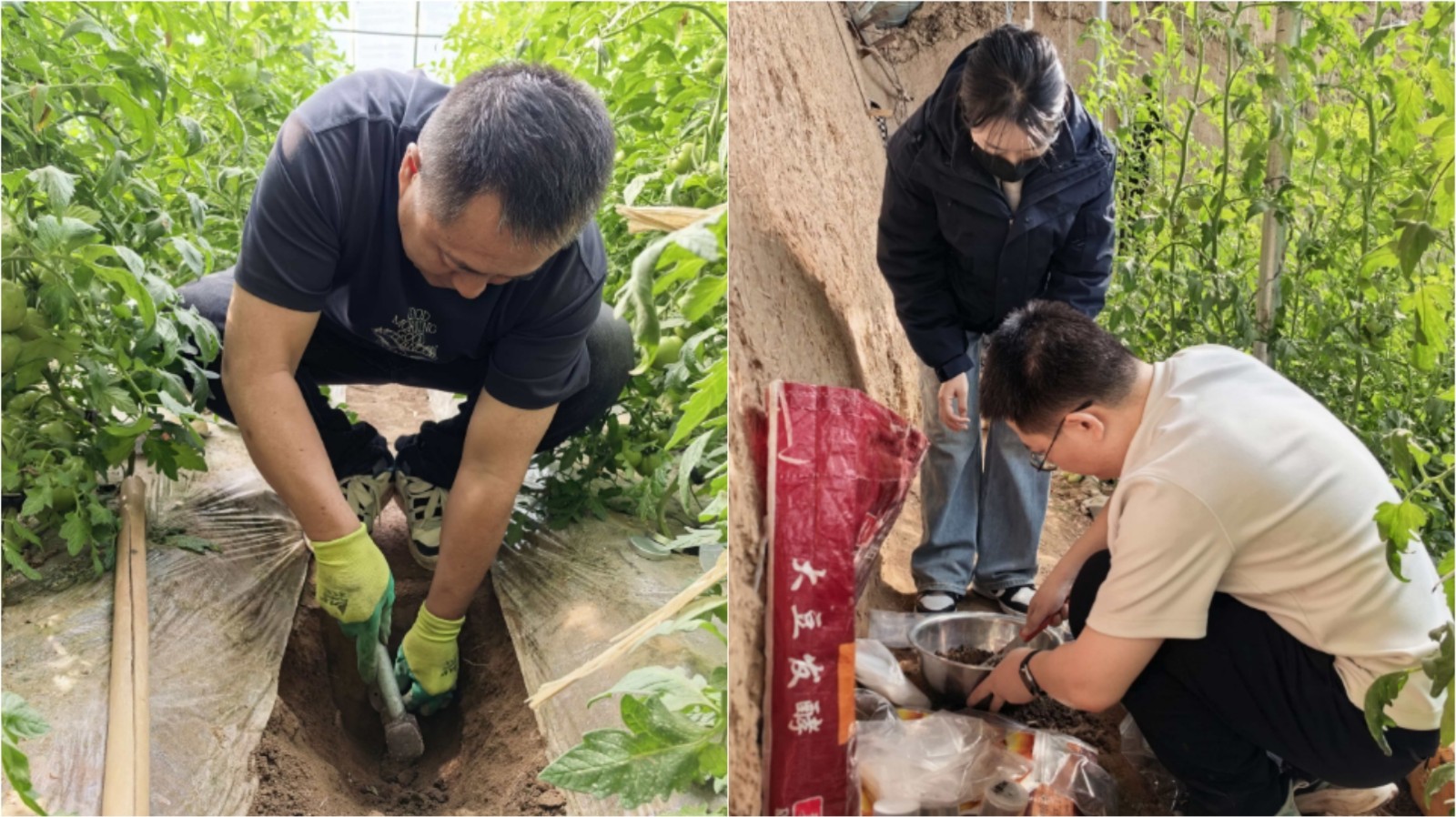 调研团队深入生产一线,实地走访鲜农设施农业产业园、隆兴昌镇联星村敕勒川农业合作社、五原县塔尔湖田园综合体产业园盈特农业合作社,察看设施果蔬种植情况,详细了解种植规模、茬口安排、田间管理等产业现状。重点围绕设施土壤连作障碍问题,采集土样,摸排土壤盐渍化、土传病害、养分失衡等产业发展痛点难点,全面掌握一线生产实情。