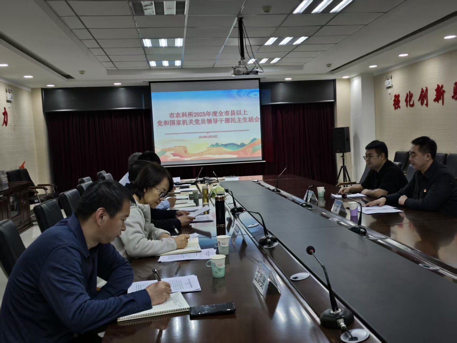 2月26日,市农科所召开2025年度党员领导干部民主生活会。市农牧局党组成员、副局长王云同志及局机关党委有关同志到会指导。市农科所领导班子全体成员参加会议。